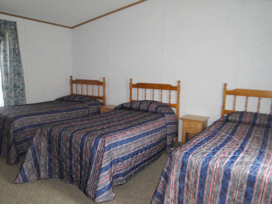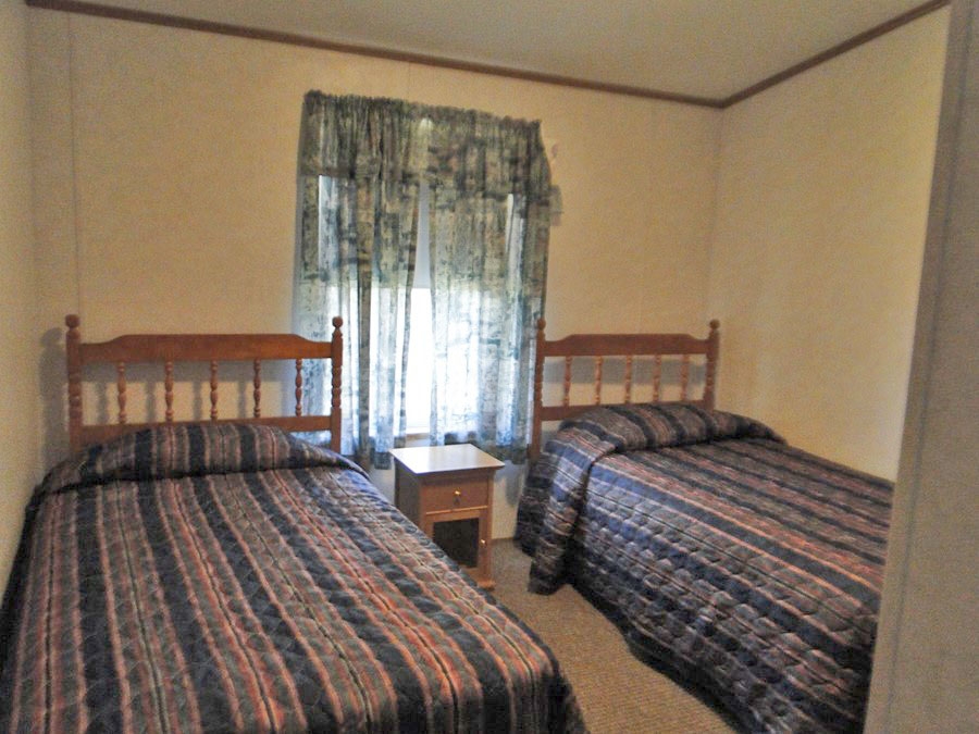 Cabin #16 is a 3 bedroom/2 bath cabin with a total of 1 full bed and 5 twin beds plus a sleeper sofa in the living room. Extra amenities include satellite TV, Central Air, a dishwasher and a screened deck.