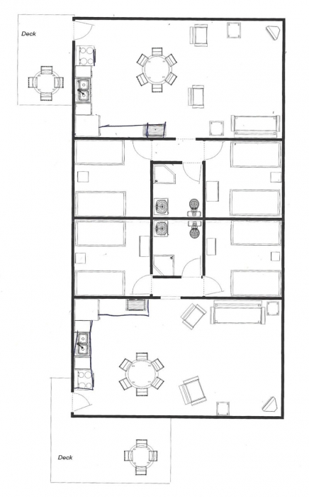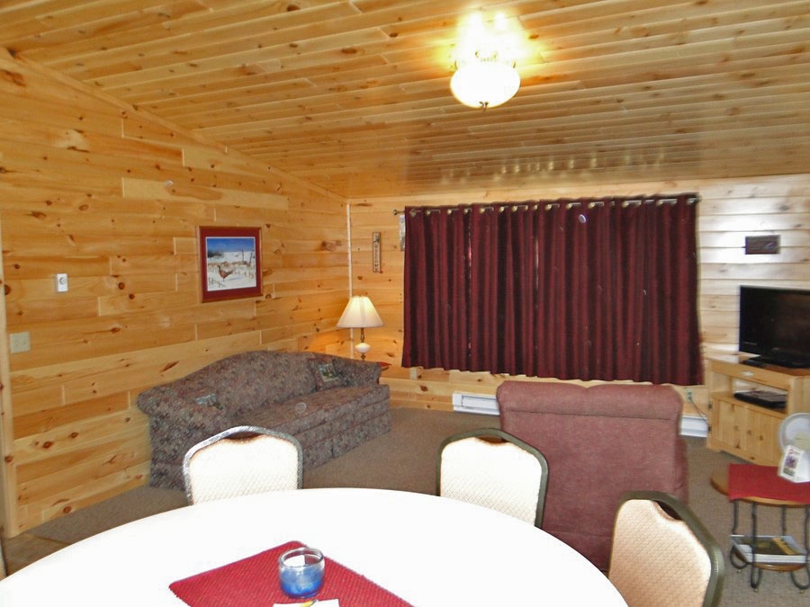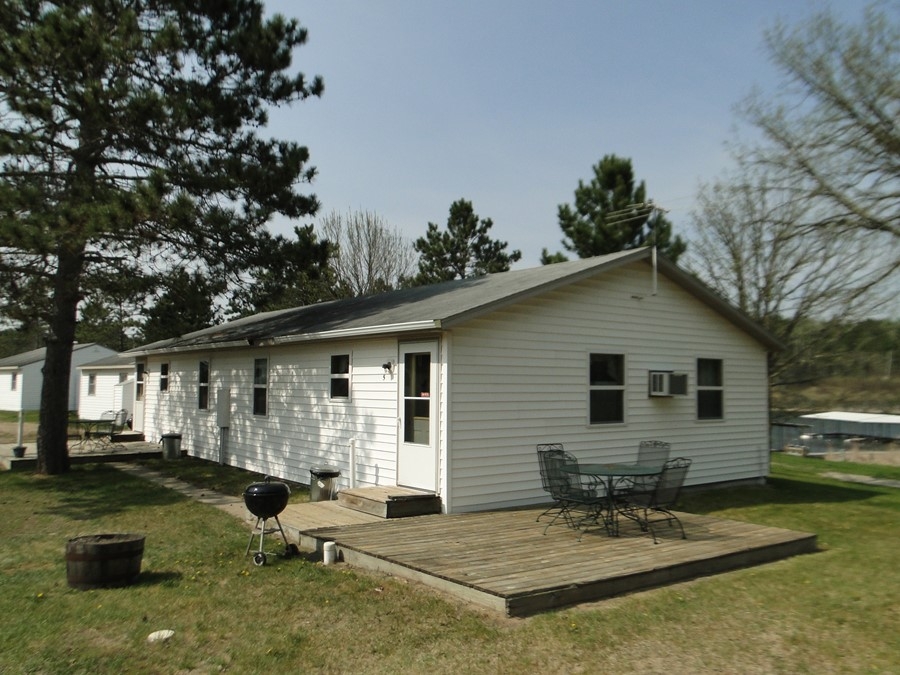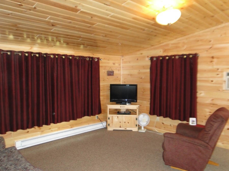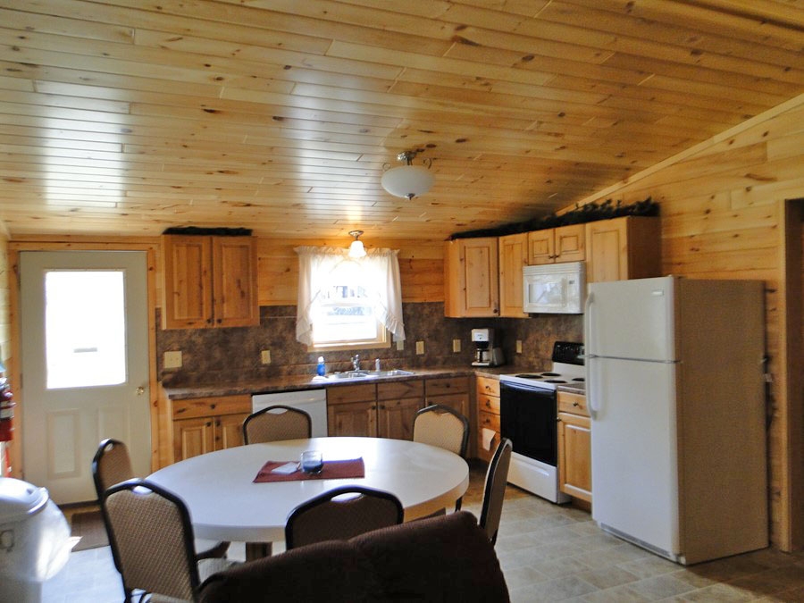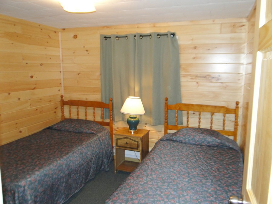 Cabin #5 is one of our riverside duplexes. It has 2 twin beds in each of the 2 bedrooms (4 twin beds) plus a sleeper sofa in the living room. Extra amenities include satellite TV, AC and a dishwasher.